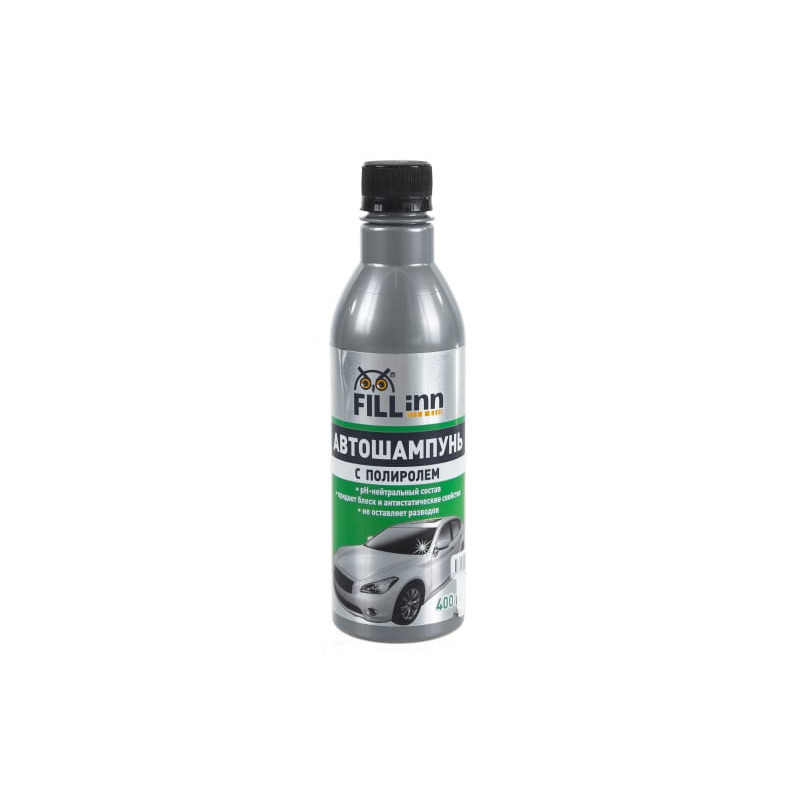 Автошампунь с полиролью FILL INN FL045 предназначен для мойки автомобиля. Он бережно и эффективно удаляет грязь, дорожную пыль, пятна от бензина, масла, жира, насекомых и другие подобные загрязнения. Шампунь легко разводится как в горячей, так и в холодной воде. Не оставляет следов и разводов после применения, обеспечивая блеск лакокрасочного покрытия. Особые полимеры, входящие в состав, защищают покрытие автомобиля от воздействия окружающей среды, создают тончайшую силиконовую пленку, придающую поверхности антистатические свойства. Средство подходит для обработки винила, алюминия, хрома и стекла. При постоянном использовании можно надолго сохранить идеальный внешний вид машины. Объем - 400 мл.
