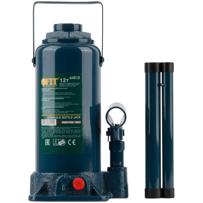 Гидравлический бутылочный домкрат FIT IT 64512 используется для подъема транспортных средств при замене колес или проведении различных ремонтных работ. Прочный металлический корпус окрашен краской и защищен от возникновения ржавчины. Инструмент легко помещается в багажник автомобиля, что позволяет использовать его в полевых условиях. Простая конструкция не требует сложного обслуживания, достаточно только чистить домкрат от загрязнения и смазывать рабочие элементы.