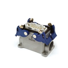 Промышленный разъем с 4-х рол. фиксатором,со штепселем, монтаж на панель (10 полюсов,2 боковых ввода, мама, металл, 16А). Количество выводов 4P+E 10, 16, 24, 32(2/16), 48(2/24) + PE. Механическая стойкость Не менее 500. Рабочая температура -40 / +125 °C. Электротехнические данные (согласно DIN EN 61984) 10 A, 250 В, 6 кВ, 3 16 А, 400 В, 6 кВ, 3. Номинальное напряжение, Ue 250 В 400 В. Номинальный ток, Ie 10 A 16 A. Степень искажений 3 Номин. импульсное выдерж. напряжение, Uimp 6 кВ. Сопротивление изоляции Не менее 10 МОм. Воспламеняемость (согласно UL94) V0 Стандарт