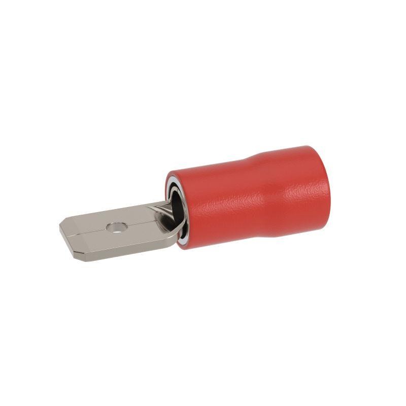 Предназначен для оконцевания медных/алюминиевых многопроволочных жил кабелей/проводов в электрических цепях переменного/постоянного тока напряжением до 600 В. Контактная часть выполнена из высококачественной меди марки М1. Лужение исключает образование гальванической пары. Внутренняя часть гильзы имеет радиальные насечки, повышающие плотность контакта. Изоляция из ПВХ выдерживает температуру до 85 ?C. Класс горючести - V0, стандарт UL 94. Полностью изолированные - нет. Двойная гильза обеспечивает наилучший электрический контакт и повышает виброустойчивость соединения. Рекомендованы для регионов с повышенной сейсмической активностью и на производственных объектах. Цвет - красный. Сечение: 0,5–1,5 кв.мм. Размер клеммы 6,3?0,8 мм. Длина лопатки - 9 мм. Форма контактной части - "папа".