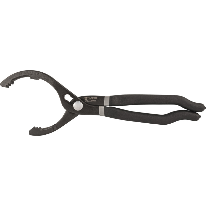 Съемник корпусных масляных фильтров, изготовленный в виде переставных щипцов, что позволяет использовать инструмент в ограниченном рабочем пространстве без лишних манипуляций.