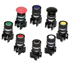 Кнопка нажимная моноблочная с фиксацией 22мм IP 40 1НО зел. EMAS MB100FY