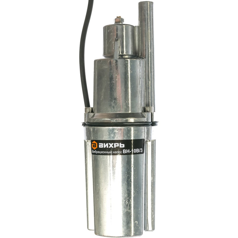 Модель Вихрь ВН-10В/3 входит в серию вибрационных насосов, используемых в системах автономного водоснабжения частных домов для выкачивания воды из малодебетовых скважин, колодцев или резервуаров. Может применяться для водозабора из открытых водоёмов. Причём расстояние от точки забора до водоёма может быть значительным – в горизонтальной плоскости до 100 м. Полезная мощность – 210 Вт. Диаметр – 76 мм. Производительность (max) – до 16 л/мин. Высота подъема (max) – 72м. Глубина погружения – до 3 м. Диаметр отверстия на выходе – 3⁄4".Работа насоса основана на передвижении поршня, изменяющего давление в камере, за счёт чего осуществляется впуск и выпуск воды под давлением. Конструкция вибрационного насоса очень простая, не содержит вращающихся элементов, поэтому не требует никакого профилактического обслуживания. Агрегат имеет качественную сборку, абсолютно герметичный и способен длительное время стабильно функционировать в погружённом состоянии. Степень защиты IPX8. Модель Вихрь ВН-10В/3 комплектуется сетевым кабелем длиной 10 м. Параметры питающей сети – 220 В, 50 Гц.