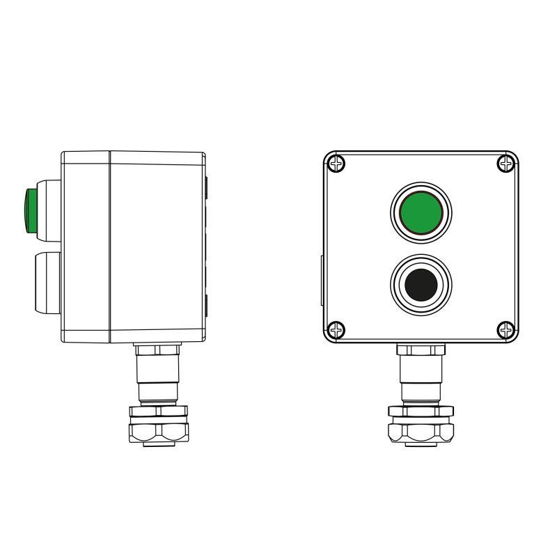 Взрывозащищенный пост управления из алюминия CPE-A-12-(1xP1B(11)-1xLG(250))-1xKAEPM2MHK-20(C)1Ex d e IIC Т5 Gb / Ex tb IIIC T95°C Db IP66 Un=400 В, In=16 А Взрывозащищенный пост управления из алюминия 120x120x90мм 1Ex d e IIC Т5 Gb / Ex tb IIIC T95°C Db IP66 Температурный режим Т5 40°C Количество элементов управления: Контактный блок 1NC/1NO + Кнопка P1 Черная 1 шт. Сигнальный блок 20V-250V AC/DC + Светофильтр Зеленый 1 шт. Количество клемм: Вводы Сторона C: Взрывозащищенный кабельный ввод серии КАЕРМ для бронированного инебронированного кабеля в металлорукаве COSMEC Dn:20 М20х1,5 d:5,8-12мм.Никелированнаялатунь IP66/IP68 1 шт.