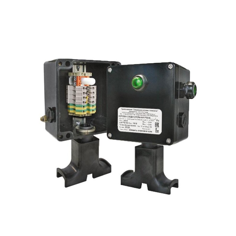 Коробка РТВ 601-ИС является модификацией устройстваРТВ 601. Предназначена для индикации наличия напряжения на нагревательной секции на базе саморегулирующихся электрических нагревательных кабелей, для соединения и разветвления нагревательных кабелей, а также для подключения к силовой сети. Коробка позволяет осуществить разветвление силового кабеля для создания инженерных сетей. Коробка комплектуется устройством ввода под теплоизоляцию и крепится непосредственно на поверхность трубопровода, резервуара. Коробка позволяет выполнить подключение до трех ниток саморегулирующегося электрического нагревательного кабеля к силовому кабелю для коробок с винтовыми клеммными соединителями и до двух ниток для коробок с пружинными клеммными соединителями. Конструкция корпуса обеспечивает защиту от проникновения влаги и пыли IP66 и высокую коррозионную стойкость. Кабельный ввод коробки предназначен для подключения небронированных силовых кабелей диаметром от 7 до 18 мм или бронированных силовых кабелей диаметром от 12 до 20 мм.