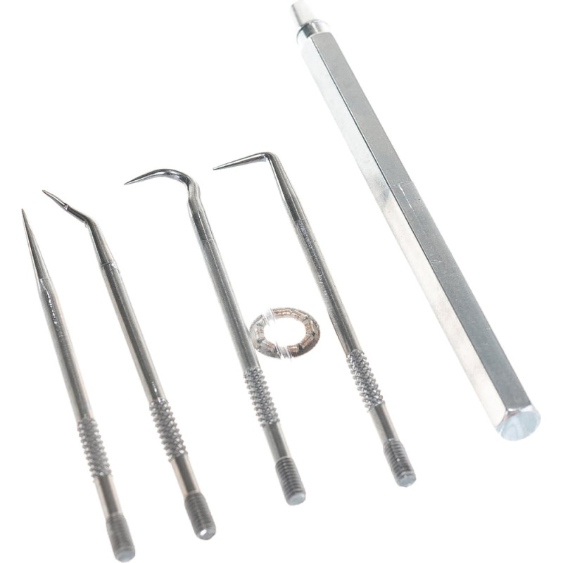 Приспособления для снятия уплотнительных колец крючки 4шт JTC 1730 позволяют быстро и аккуратно осуществить демонтаж требуемых элементов, что увеличивает производительность как автомеханика, так и автосервиса в целом. Инструменты изготовлены из высокопрочной нержавеющей стали, которая обеспечивает им устойчивость к различным механическим воздействиям и, как следствие, гарантирует продолжительный рабочий ресурс.