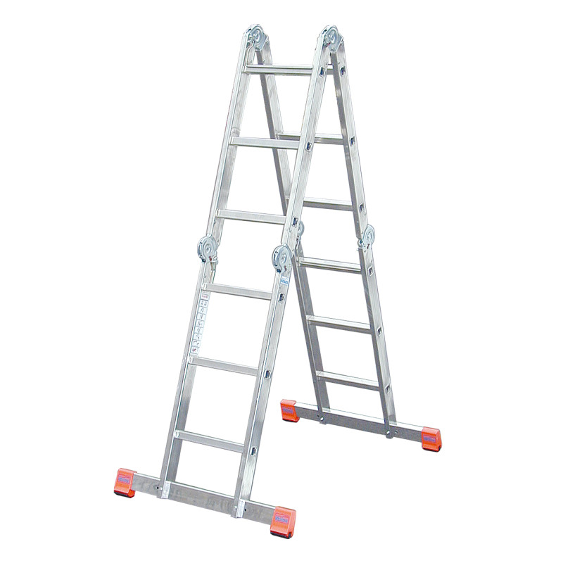 Четырехсекционная универсальная алюминиевая шарнирная лестница - применяется как двусторонняя стремянка, как приставная лестница и как рабочая платформа. Легко и быстро складывается, умещается в багажнике автомобиля. Запатентованная система шарниров-фиксаторов KRAUSE с дужкой для одновременного привода в действие обоих шарниров одной рукой. Две широкие поперечные траверсы с двухкомпонентными заглушками увеличивают опорную площадь. Противоскользящие двухкомпонентные опорные заглушки - твердый материал обеспечивает прочное соединение с боковиной, мягкий материал обеспечивает надежное сцепление с опорной поверхностью и препятствует нежелательному скольжению лестницы.