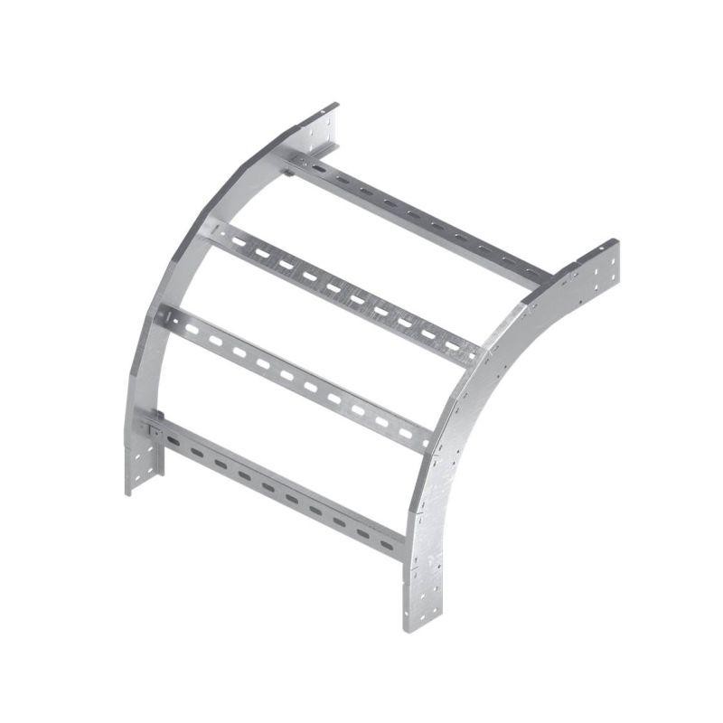 Угол вертикальный внешний предназначен для организации поворота трассы на основе лестничных лотков с высотой борта 50 мм и шириной основания 500 мм вниз на 90 градусов. Радиус поворота угла - 300 мм. Аксессуар поставляется в комплекте с крепежными элементами и соединительными пластинами, необходимыми для монтажа. Изделие представлено в специальном исполнении "Цинк-ламельное покрытие".