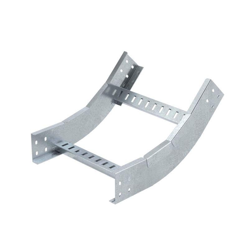 Угол вертикальный внутренний предназначен для организации поворота трассы на основе лестничных лотков с высотой борта 80 мм и шириной основания 300 мм вверх на 45 градусов. Радиус поворота угла - 600 мм. Аксессуар поставляется в комплекте с крепежными элементами и соединительными пластинами, необходимыми для монтажа. Данное изделие представлено в исполнении "Сталь, оцинкованная по методу Сендзимира". Толщина лонжерона изделия – 1,5 мм, а толщина поперечины – 1,0 мм.