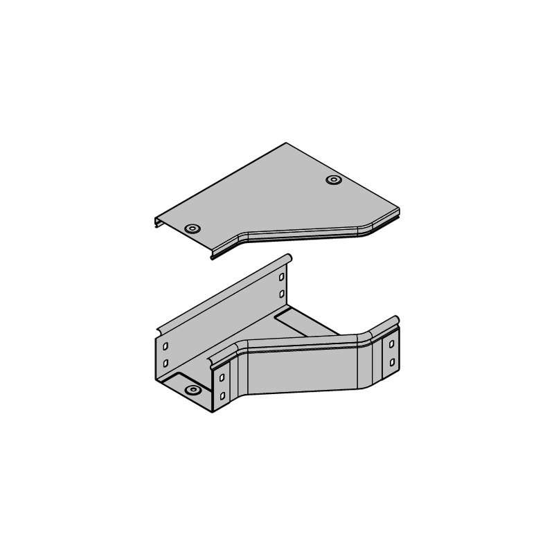 При построении кабельных трасс может возникать ситуация, когда требуется увеличить или уменьшить ширину лотка. Для этого применяется переходник (редукция) – аксессуар, имеющий разную ширину в начале и в конце. Правосторонняя редукция – аксессуар, который расширяется с правой стороны. Такой конструктив позволяет размещать переходник вплотную к стене.