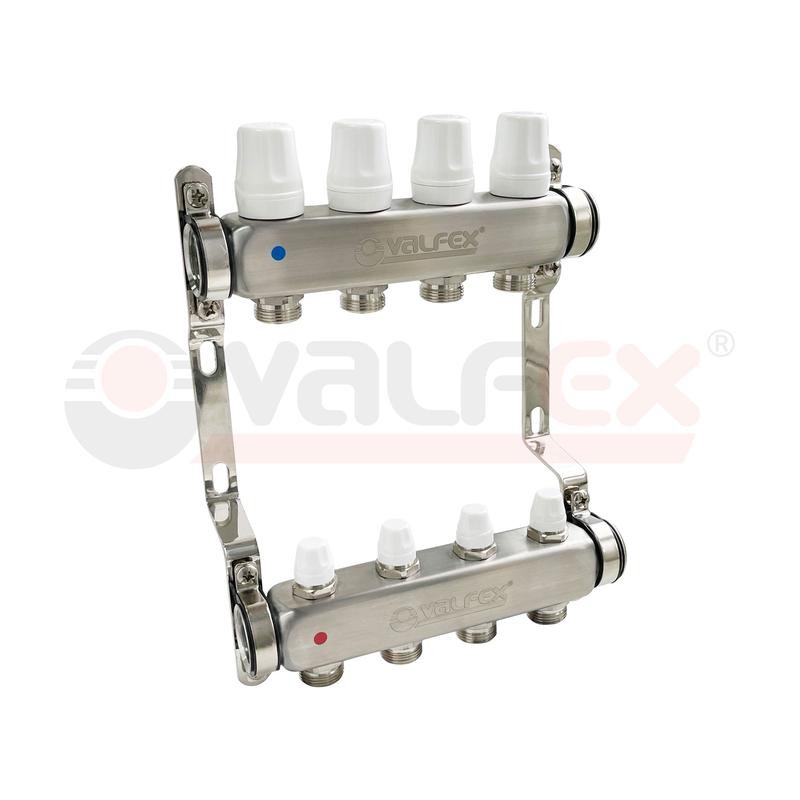 Блок коллекторов 1дюйм х 4 вых. евроконус 3/4дюйм с ручн. регулир. клапан. нерж. сталь (2) К VALFEX VF.582.0604