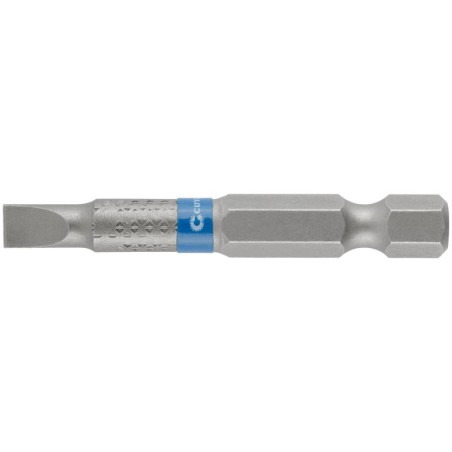 Намагниченный шлиц, антискользящие риски. Высокая точность. Биты изготавливается из тайваньской стали высшего качества марки S2. Знак качества. Ребра биты производятся с помощью холодной штамповки в соответствии с точной спецификацией. Кончик проходит специальный процесс закалки при температурах до 870°C. Результатом является насадка с твердостью 60 HRC для увеличения срока службы. Биты произведены по технологии CUTOP. Ресурс биты от 2000 шт. саморезов (собственные испытания, проведенные на саморезах по дереву 3,5х41). Упаковка: картонный подвес.
