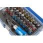 Биты: PH1, PH2 (2 шт.), PH3, PZ1, PZ2 (2 шт.), PZ3, SL3, SL4, SL5, SL6, HEX3, HEX4, HEX5, HEX6. TORX, TORX HOLE: 10, 15, 20, 25, 27, 30, 40.