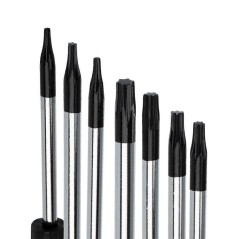 Набор часовых отверток "TORX" ht-5214 REXANT предназначен для выполнения высокоточных работ в часовых механизмах, компьютерной технике, теле и радиоаппаратуре, а также для ремонта и обслуживания мобильных телефонов. Отвертки изготовлены из высококачественной легированной стали с дополнительно термообработанными (для повышения износостойкости) наконечниками. Обрезиненная рукоятка с свободно вращающимся затыльником, обеспечивающим удобство при заворачивании микровинтов. В набор входят 7 отверток: Т5, Т6, Т7, Т8, Т9, Т10, Т15. Поставляется в пластиковой коробке с ложементом.