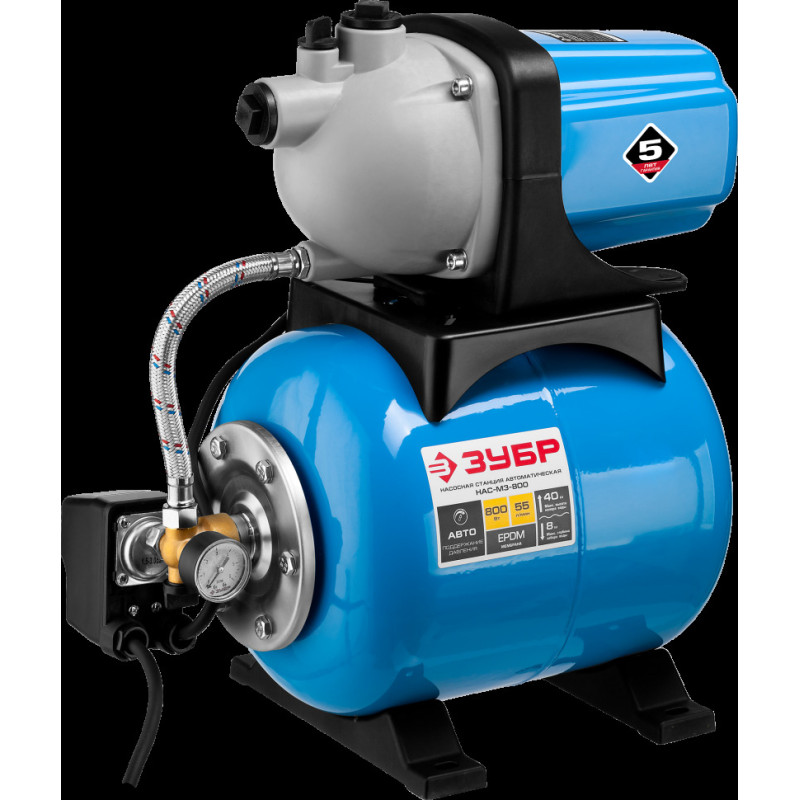 Насосная станция ЗУБР НАС-М3-800 служит для забора воды с глубины, для полива и водоснабжения. Гидроаккумулятор создаёт запас воды, сокращая количество включений и выключений системы, а термопредохранитель защищает от перегрева, исключая возможность поломки насоса. Мембрана гидроаккумулятора изготовлена из каучука EPDM, который не деформируется при низких температурах и выдерживает высокие нагрузки.