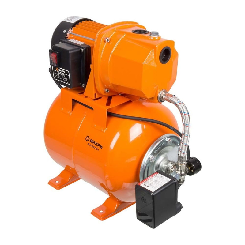 Автономная станция водоснабжения поможет организовать бесперебойную подачу воды в загородный дом, коттедж или любое другое место, не имеющее центрального водоснабжения. Использование устройства избавляет хозяина от необходимости включать и выключать насос для подачи воды. Вихрь АСВ 800/20Ч сделает все сам.Станция состоит из насоса, гидроаккумулятора, манометра и реле. Благодаря такой конструкции она экономит ресурс насоса и электроэнергию за счет редкого включения оборудования. В баке гидроаккумулятора находится вода под давлением, которая по мере необходимости подается в систему водоснабжения. Включение насоса потребуется только тогда, когда давление в баке опустится до минимальных заданных значений.Особенности Вихрь АСВ 800/20Ч:Корпус насосной части двигателя изготовлен из чугуна.Максимальная производительность – 60 л/мин, а напор – 40м. Станция легко сумеет поднять воду на верхний этаж коттеджа.Функция самовсасывания позволяет забирать воду из скважин глубиной до 9 м.Вихрь АСВ-800/20Ч может обеспечивать снабжение водой до трех открытых водозаборных точек, при заборе с глубины менее 5м и при длине магистрали до 5м.Автономная станция водоснабжения включает в себя все необходимые составляющие для организации бесперебойного водоснабжения загородного дома или коттеджа. Ее удобно использовать и легко обслуживать. Надежная конструкция будет работать в автоматическом режиме и самостоятельно поддерживать необходимое давление в системе.