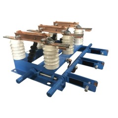 Разъединитель серии РЛНД выполнен в виде трехполюсного горизонтально-поворотного типа. Каждый полюс имеет один поворотный и один неподвижный изоляторы, на которых расположена контактная система.