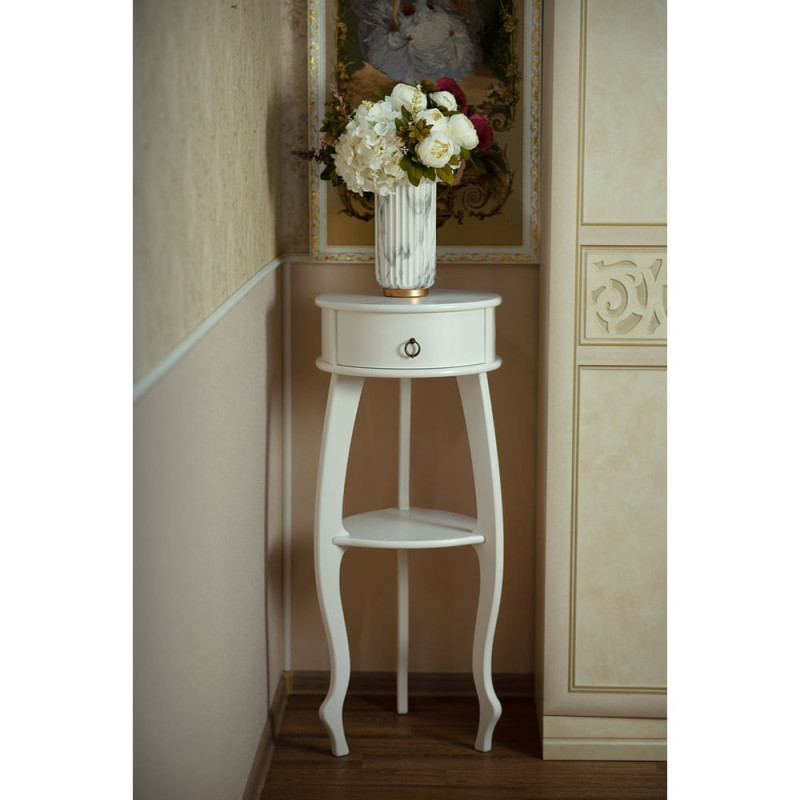 Подставка Мебелик Берже 12 белый ясень 001467 1467 подходит в классический интерьер прихожей, гостиной, спальни, будуара. Может использоваться как подставка под большую вазу с цветами, статуэтку, или комнатное растение. Предметы серии "Берже" отлично сочетаются друг с другом, составляя набор мебели в классическом стиле.