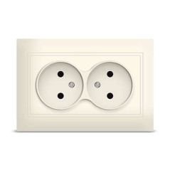 Розетка двойная Systeme Electric (ранее Schneider Electric) серии AtlasDesign (в сборе, цвет бежевый) без заземления и без шторок подходит для сетей 250 В, на ток 16 А.
