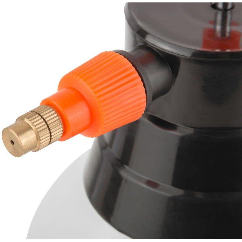 Для распыления различных жидкостей. Встроенный в крышку насос для создания рабочего давления. Степень распыления регулируется повором сопла. Материал: пластиковый корпус, латунное сопло.