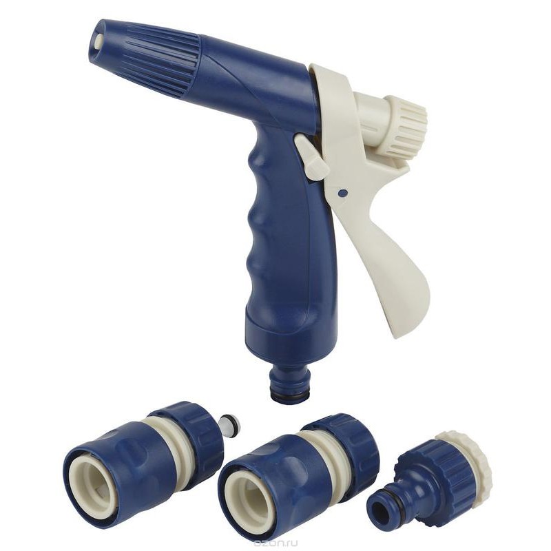 Комплект для полива GREEN APPLE Применяется для полива растений. Комплектация набора позволяет собрать с помощью шланга поливочную линию и подключить ее к крану или водопроводной трубе с резьбой 1/2” или 3/4”