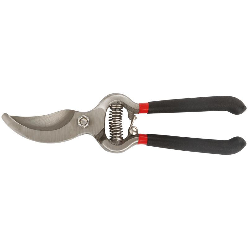 Режущие кромки внахлест. Цельнокованый. Для обрезания побегов и веток диаметром до 208мм. Материал: инструментальная сталь, ПВХ покрытие