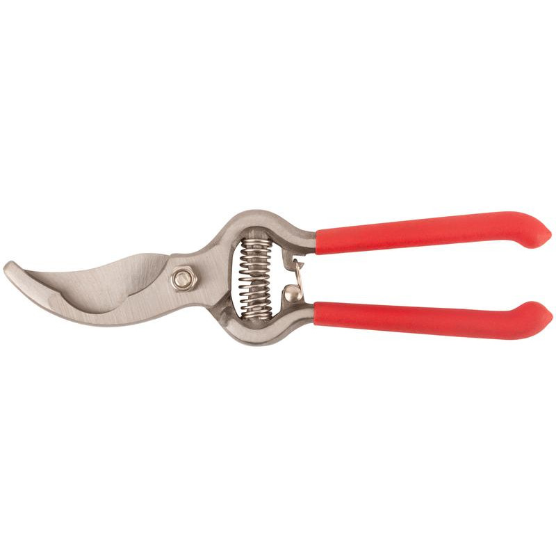 Цельнокованый. Для обрезания побегов и веток толщиной до 23 мм. Материал: лезвие из инструментальной стали, ПВХ покрытие ручек. Упаковка: блистер.