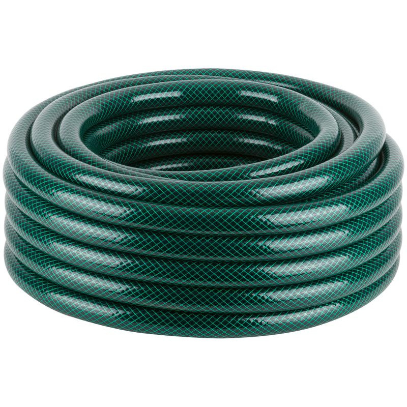 Трехслойный, армированный синтетической нитью. Предназначен для полива, перекачки и прочих работ с жидкостями. Максимальное рабочее давление: 1/2" - 5 бар, 3/4" - 4 бар, 1" - 3 бар. Диапазон рабочих температур от +5 до +45°C. Материал: ПВХ, полиэстерная нить.