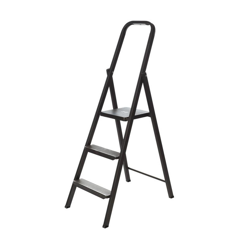 «Компакт». Толщина в сложенном состоянии 90 мм. Ступени закреплены при помощи сварки. Полное антикорозионное покрытие. Цвет серии: черный металлик. Нагрузка допустимая 120 кг. Материал: сталь, пластик.