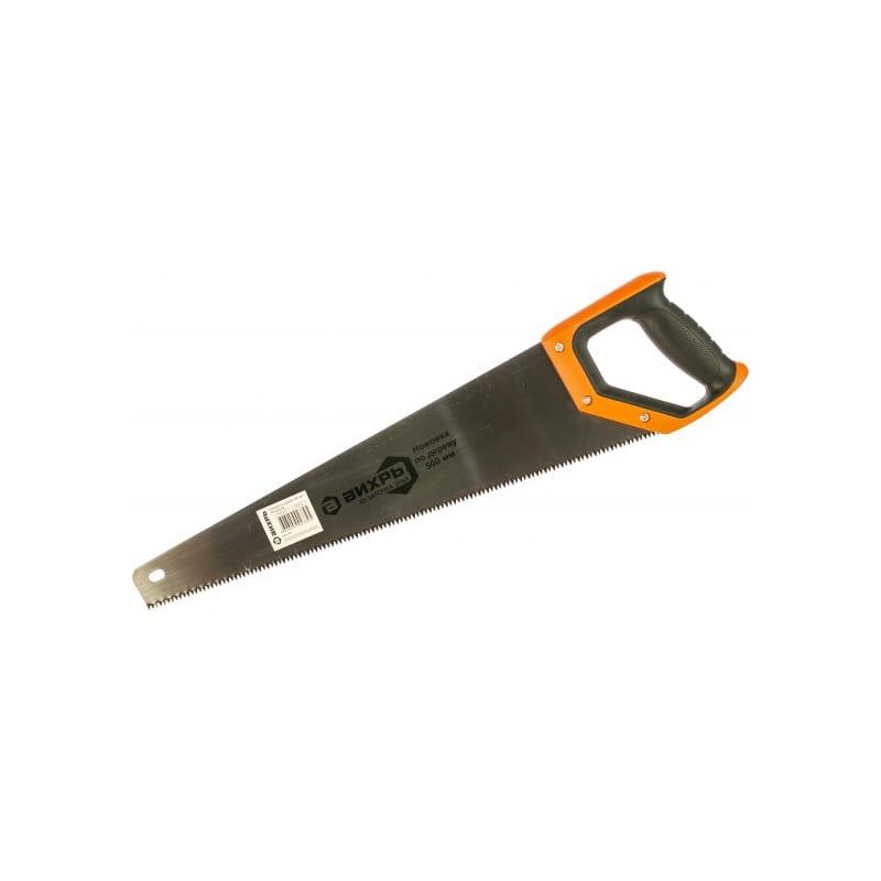Ножовка ВИХРЬ 500 мм с трехмерной заточкой и двухкомпонентной рукояткой применяется для продольного и поперечного пиления.